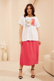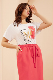 Дизайнерский юбочный костюм выполненный в стиле Casual отличный выбор для современной женщины. Жакет – Бомбер на основе цельнокроеного покроя прямого силуэта мягкой формы с воротником стойкой и центральной застежкой. Застежка на петли и пуговицы, по низу широкая резинка. Линия плеча спущена, рукав с отворотом фиксируется патой. Футболка цельнокроеного покроя с округлым вырезом выполнена из вискозы, по горловине и низу рукава узкие отрезные бейки. Перед украшен авторским принтом. Юбка миди прямого силуэта с косыми карманами и разрезами по бокам на притачном поясе. Пояс на резинке с завязками. (ЮБКА НА Х/Б ПОДКЛАДКЕ)