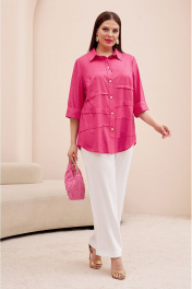 Стильная блузка-рубашка с застроченными складками и металлическими пуговицами отлично впишется в ваш гардероб, легко сочетать с другими вещами создавая стильные и современные образы , подходит для шпилек и обуви на плоском ходу. Рубашка прямого силуэта свободного кроя с отрезной планкой и центральной застежкой. Стильный акцент на золотые пуговицы завершает весь образ. Перед оформлен нагрудными вытачками из проймы и ассиметричными складками, спинка с горизонтальной кокеткой и встречной складкой. Линия плеча приспущена, рукав с отложной манжетой с отворотом.
