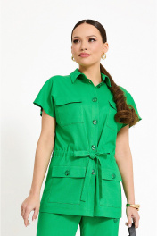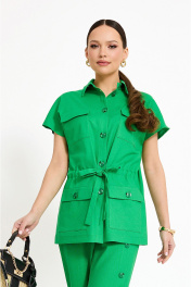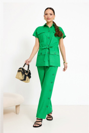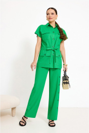 Брючный костюм с жакетом со спущенной линией плеч и брюками на резинке Lissana 4890 травяной