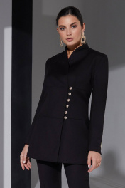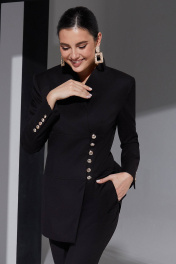 Минималистичный черный костюм с удлиненным жакетом и брюками свободного кроя Lissana 4957 чёрный