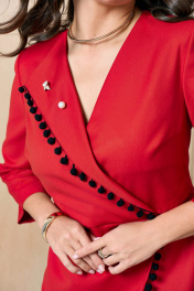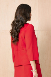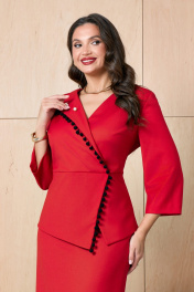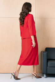 Костюм юбочный Блуза с V- образным вырезом горловины, фигурным низом и баской. Перед с брошью на лацкане и пришивным декором по краю. Спинка с потайной молнией в среднем шве и талиевыми вытачками до баски. Рукава втачные. Юбка на поясе с резинкой и разрезом по боковому шву. Заднее полотнище с потайной молнией в среднем шве. Юбка на подкладке. ВОЗМОЖНА ЗАМЕНА ФУРНИТУРЫ НА АНАЛОГИЧНУЮ ТАКОГО ЖЕ КАЧЕСТВА.