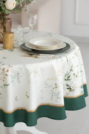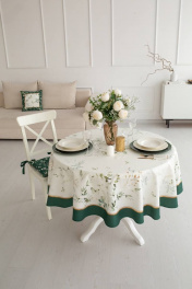 Круглая белая скатерть с изумрудной каймой 170см для стола Listelle 512107