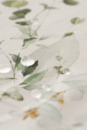 Все скатерти коллекции «ЭВЕЛИНА» имеют специальную пропитку (влаго-, масло- и грязеотталкивающую обработку). Принт на ткани нанесен методом цифровой печати с использованием высококачественных красителей, благодаря чему изделия не линяют и не меняют свой цвет после многократных стирок. Рисунок по ткани виден только на лицевой стороне. ЭКСКЛЮЗИВНЫЙ ДИЗАЙН: Если изумрудный цвет вас завораживает, тогда новая коллекция «ЭВЕЛИНА» будет у вас дома! Это идеальное сочетание белого с изумрудным, подчеркнутое золотыми элементами в рисунке, мы увидели и прочувствовали уже на фотосессии. Скатерть коллекции «ЭВЕЛИНА» размером D-170см круглая. Скатерть D-170см подходит для круглого стола диаметром 100…110…120см. Изысканная белоснежная скатерть украшена по краю изумрудной каймой с позолоченным кантиком. Легкие воздушные зеленые веточки и порхающие мотыльки добавляют скатерти свою романтичность и смягчают строгий стиль белого цвета.