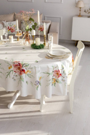 Все скатерти коллекции имеют специальную пропитку (влаго-, масло- и грязеотталкивающую обработку). Принт на ткани нанесен методом цифровой печати с использованием высококачественных красителей, благодаря чему изделия не линяют и не меняют свой цвет после многократных стирок. Рисунок по ткани виден только на лицевой стороне.