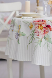 Все скатерти коллекции имеют специальную пропитку (влаго-, масло- и грязеотталкивающую обработку). Принт на ткани нанесен методом цифровой печати с использованием высококачественных красителей, благодаря чему изделия не линяют и не меняют свой цвет после многократных стирок. Рисунок по ткани виден только на лицевой стороне.