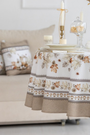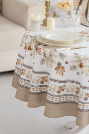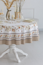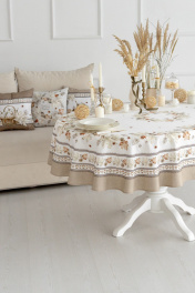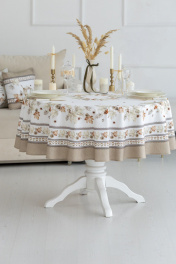 КОЛЛЕКЦИЯ «ТОРОНТО» Скатерть D-170см подходит для круглого стола диаметром 100…110…120см. СВОЙСТВА ТКАНИ (состав, плотность, пропитка): Состав ткани 100% хлопок. Все скатерти и дорожки коллекции «ТОРОНТО» выполнены из ткани для столового белья плотностью 190г/кв.м и имеют специальную пропитку (влаго-, масло- и грязеотталкивающую обработку). Принт на ткани нанесен методом цифровой печати с использованием высококачественных красителей, благодаря чему изделия не линяют и не меняют свой цвет после многократных стирок. Рисунок по ткани виден только на лицевой стороне. ЭКСКЛЮЗИВНЫЙ ДИЗАЙН: УХОД ЗА ИЗДЕЛИЕМ: Изделия из натуральных тканей требуют особого ухода. Стирка при температуре 30 С; деликатный отжим (чтобы уменьшить смятость изделия), гладить изделия полувлажными при максимальной температуре, не отбеливать. Если при использовании изделий было нанесено пятно, рекомендуем испачканное изделие постирать не позднее следующего дня, т.к. натуральные нити ткани быстро впитывают натуральные красители еды и напитков (чай, кофе, соусы). При стирке изделий допускается использование пятновыводящих средств для цветного белья. После стирки возможна усадка изделия на 3-5%.
