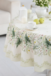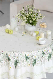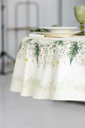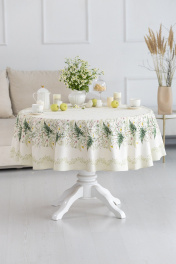 Скатерть D-170см подходит для круглого стола диаметром 100…110…120см. СВОЙСТВА ТКАНИ (состав, плотность, пропитка): Состав ткани 100% хлопок. Все скатерти и дорожки коллекции «КУПАЛИНКА» выполнены из ткани для столового белья плотностью 190г/кв.м и имеют специальную пропитку (влаго-, масло- и грязеотталкивающую обработку). Принт на ткани нанесен методом цифровой печати с использованием высококачественных красителей, благодаря чему изделия не линяют и не меняют свой цвет после многократных стирок. Рисунок по ткани виден только на лицевой стороне. ЭКСКЛЮЗИВНЫЙ ДИЗАЙН: УХОД ЗА ИЗДЕЛИЕМ: Изделия из натуральных тканей требуют особого ухода. Стирка при температуре 30 С; деликатный отжим (чтобы уменьшить смятость изделия), гладить изделия полувлажными при максимальной температуре, не отбеливать. Если при использовании изделий было нанесено пятно, рекомендуем испачканное изделие постирать не позднее следующего дня, т.к. натуральные нити ткани быстро впитывают натуральные красители еды и напитков (чай, кофе, соусы). При стирке изделий допускается использование пятновыводящих средств для цветного белья. После стирки возможна усадка изделия на 3-5%.