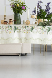 Скатерть 145х250см подходит для прямоугольного стола шириной 70...80...90...100см и длиной 180…190…200см. СВОЙСТВА ТКАНИ (состав, плотность, пропитка): Состав ткани 100% хлопок. Все скатерти и дорожки коллекции «КУПАЛИНКА» выполнены из ткани для столового белья плотностью 190г/кв.м и имеют специальную пропитку (влаго-, масло- и грязеотталкивающую обработку). Принт на ткани нанесен методом цифровой печати с использованием высококачественных красителей, благодаря чему изделия не линяют и не меняют свой цвет после многократных стирок. Рисунок по ткани виден только на лицевой стороне. ЭКСКЛЮЗИВНЫЙ ДИЗАЙН: УХОД ЗА ИЗДЕЛИЕМ: Изделия из натуральных тканей требуют особого ухода. Стирка при температуре 30 С; деликатный отжим (чтобы уменьшить смятость изделия), гладить изделия полувлажными при максимальной температуре, не отбеливать. Если при использовании изделий было нанесено пятно, рекомендуем испачканное изделие постирать не позднее следующего дня, т.к. натуральные нити ткани быстро впитывают натуральные красители еды и напитков (чай, кофе, соусы). При стирке изделий допускается использование пятновыводящих средств для цветного белья. После стирки возможна усадка изделия на 3-5%.