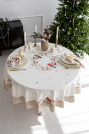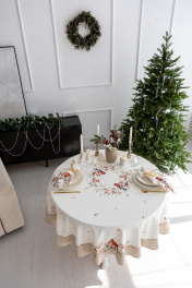 Все скатерти и дорожки коллекции «ПЕРНАТЫЕ ИСТОРИИ» выполнены из ткани для столового белья плотностью 180г/кв.м и имеют специальную пропитку (влаго-, масло- и грязеотталкивающую обработку). Принт на ткани нанесен методом цифровой печати с использованием высококачественных красителей, благодаря чему изделия не линяют и не меняют свой цвет после многократных стирок. Рисунок по ткани виден только на лицевой стороне. ЭКСКЛЮЗИВНЫЙ ДИЗАЙН: Коллекция «Пернатые истории» — это зимняя сказка, сотканная из тепла, уюта и волшебства. В её центре — трогательные образы птиц, уютно устроившихся на заснеженных ветвях с яркими ягодами, словно наблюдающих за тем, как дом наполняется ожиданием праздника. «Пернатые истории» — это не просто декор. Это приглашение замедлиться, зажечь свечи, налить горячий чай и встретить Новый год в окружении красоты, вдохновлённой природой.