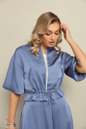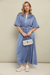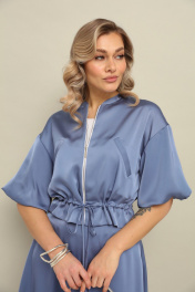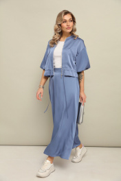 Комплект 2ка, состоящий из укороченного бомбера и юбки. Бомбер с застёжкой на молнию и объёмными рукавами. Линия талии на кулисе и завязке из основной ткани . Юбка кроя трапеция, длина макси. Длина юбки 90-92 см. Длина бомбера 48-49 см.