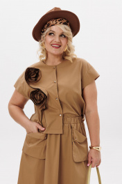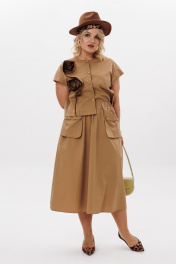 Комплект блузки с короткими рукавами и юбки трапеции из хлопка LM К5021 песочный