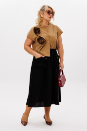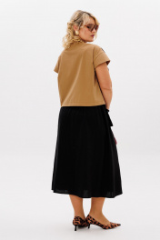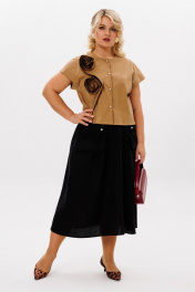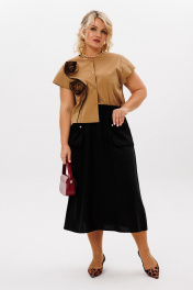Бежево-черный комплект: блуза и миди юбка с карманами LM К5026