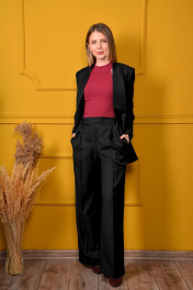 Свободные брюки продолжают набирать популярность и уже успели завоевать любовь самых стильных девушек во всем мире. Широкие брюки в сочетании с многослойным верхом создадут модный образ, который легко стилизовать под любой случай при помощи аксессуаров. Брюки от LM – это брюки умеренного объема, прямого силуэта. На передних половинках брюк заутюжены стрелки, переходящие в складки по линии талии. На задних половинках также заутюжены стрелки. В боковых швах расположены карманы. Застежка-гульфик. Пояс отрезной, притачной. В задней части пояса вставлена эластичная тесьма (резинка). На пояс настрочены шлевки. Выступающая часть пояса застегивается на петлю и крючок. Длина брюк в пол 114 см, ширина по низу 27-34 см в зависимости от размера. Фурнитура и материалы отделки могут незначительно отличаться от тех, что на фотографии.