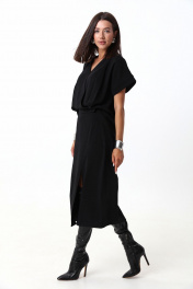 Костюм 2ка, состоящий из блузы и юбки,который превращается в платье. Блузка свободного объёма с короткими рукавами и V-образной горловиной имеет по низу спрятанную молеию, которой можно соединить блузу с юбкой и получить новый образ в виде платья. Юбка прямого силуэта,длины ниже колена с разрезом по переду. Застежка юбки на потайную молнию по боковому шву. Сзади в поясе для удобства вставлена резинка. Рост фотомодели 175 см. Размер у фотомодели – 44.