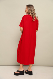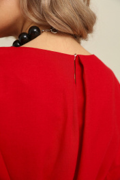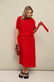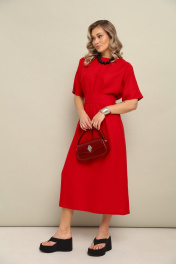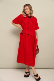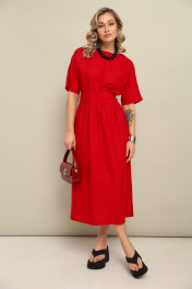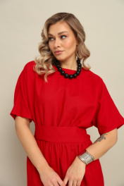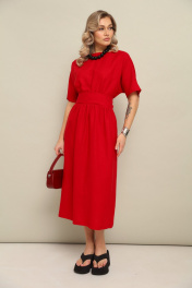 Платье длины миди со свободной юбкой и пришивным по переду поясом. Рукав цельнокроеный. По спинке встречные складки и застёжка по линии горловины на пуговицу. Длина по спинке 125 см.