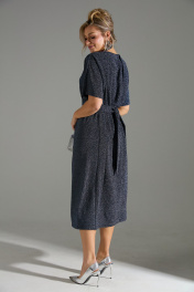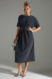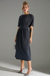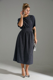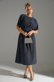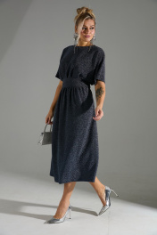 Платье длины миди со свободной юбкой и пришивным по переду поясом. Рукав цельнокроеный. По спинке встречные складки и застёжка по линии горловины на пуговицу.