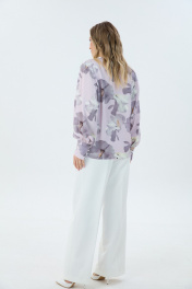 Изящная блуза из нежной ткани с цветочным принтом. Блуза свободного силуэта с V-образным вырезом. Это довольно глубокий вырез, который прекрасно подчёркивает декольте и линию шеи. Застежка на навесные петли и пуговицы. Рукава длинные объёмные втачные заканчиваются широкой манжетой с застёжкой на навесные петли с пуговицами.