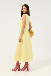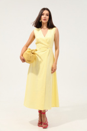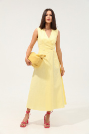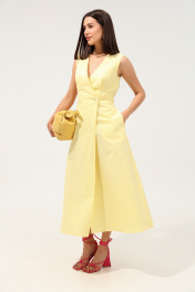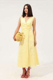 Платье "макси" без рукавов с застёжкой на запах на функциональные петли и пуговицы. Вырез декольте V-образный.По линии талии спинки эластичная вставлена эластичная резинка. При надобности, платье легко слегка расширить или заузить по талии, переставив пуговицы . СОВЕТ ОТ СТИЛИСТА: Платье отлично сочетается с "шлепанцами" для жаркой летней прогулки или трендовыми сандалиями в стиле "гладиатор" для акцентного образа. Чтобы создать романтичный девчачий образ- остановитесь на балетках в бежевом или черном цвете и дополните образ маленькой аккуратной сумочкой.