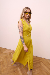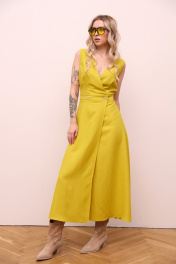 Желтое макси платье с V-образным вырезом и эластичной талией LM М83 желтая_груша