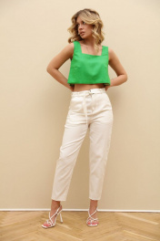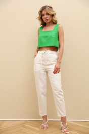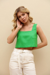 Льняной укороченный топ с широкими бретелями LM ТК1005 зеленый