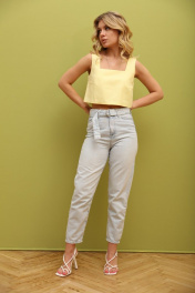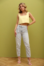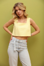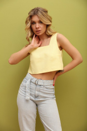 Льняной укороченный топ с широкими бретелями LM ТК1007 желтый