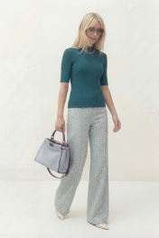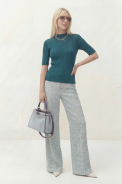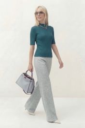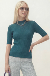 Джемпер полуприлегающего силуэта, выполнен из трикотажного полотна. Рукав в тачной, длина рукава до линии локтя. По горловине стойка. Джемпер: Длина по спинке от высшей точки горловины: 58 см Длина рукава: 28 см ОГ: 86-90-94-98 см (размер 42-44-46-48)