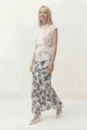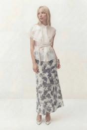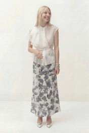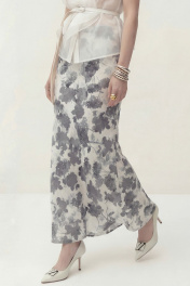 Юбка А-силуэта, выполнена из атласа на подкладке. Дизайн акварельные цветы. По талии на обтачке, застежка в боковом шве. Длина: 100 см ОТ: 72-76-80-84-88 см (размер 42-44-46-48-50) ОБ: 94-98-102-106-110 см (размер 42-44-46-48-50)