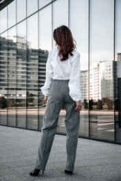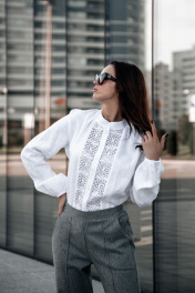 льняная блузка свободная с кружевом и воротником стойка L. LABKOVA 2701/23-17 белый
