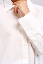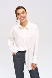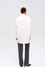 Рубашка удлиненная свободного кроя. Подчеркнет вашу индивидуальность и создаст стильный и современный образ. Подойдет как для офиса, так и для повседневной жизни. Модель выполнена из хлопка с примесью полиэстера, что делает ее тактильно приятной, гладкой и менее мнущейся. - Oversize крой - Единый размер - Удлиненная - Застегивается на планку с пуговицами - Воротник рубашечный на стойке - Не просвечивается - Приспущенный рукав, манжет со скрытыми пуговицами Длина рубашки по спинке 80 см, ширина 66 см, длина рукава 54 см. Параметры модели: 83-64-94 см Рост модели 173 см