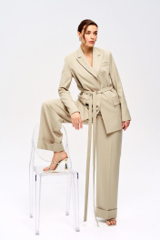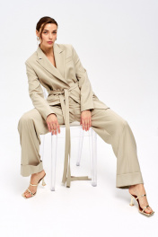 Жакет свободного кроя, полуприлегающего силуэта на завязках, длиной ниже линии бедер. Интересная модель подойдёт для элегантных женственных образов. Выполнен из тактильно приятной ткани на основе вискозы. - Жакет с отложным воротником - Свободный крой - Карманы с клапаном - Без застежек - Силуэт формируется завязками - Подплечники - Изделие на подкладке - Втачной рукав Сочетайте жакет с брюками из нашей коллекции. Длина жакета по спинке 78 см, длина рукавов около 64 см. На модели жакет размера 44 Параметры модели: 89х64х95 см Рост модели 176 см