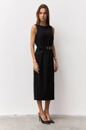 Платье из костюмной ткани без подкладки и без карманов. Ремень в комплект не входит.