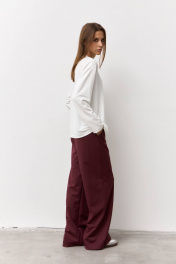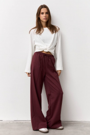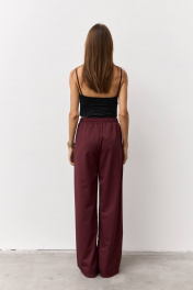 Широкие брюки из костюмной ткани с шнурком и эластичным поясом Luitui R2019 винный