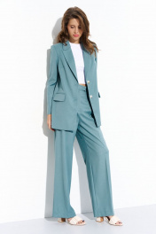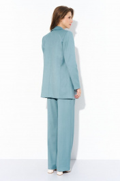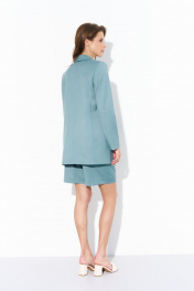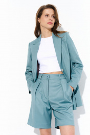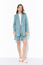 Жакет прямого силуэта, длиной до линии бедер с втачными рукавами до запястья, с воротником пиджачного типа. Застежка центральная на две прорезные петли и пуговицы. На деталях переда обработаны прорезные карманы в рамку с клапанами. На левой детали переда в области лацкана обработан прорезной карман-обманка с листочкой. Спинка с рельефами и средним швом. Изделие на подкладке. Длина изделия по спинки 77 см. Длина рукава 62 см.