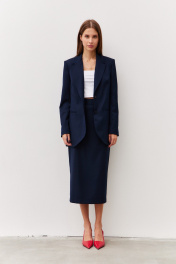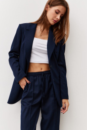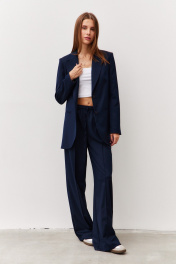 Жакет деловой из текстиля в стиле кэжуал Luitui R3014 темно-синий