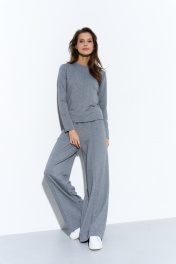 Трикотажный костюм с широкими брюками и джемпером из двухнитки Luitui R4017 серый