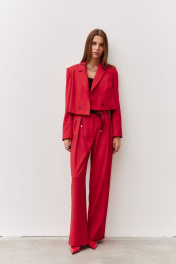 Брюки и жакет черный классический костюм Luitui R4041 красный