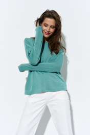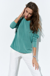 Джемпер из трикотажа свободный летний с круглым вырезом Luitui R5047 бирюзовый