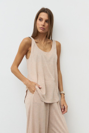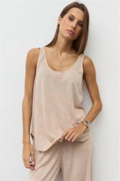 Майка из вискозного полупрозрачного трикотажного полотна с глубокой горловиной. Спинка и полочка разной длины с закругленными краями. собери комплект: черный +шорты R2040 молочный.