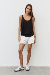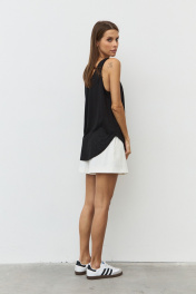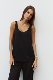 Майка из вискозного полупрозрачного трикотажного полотна с глубокой горловиной. Спинка и полочка разной длины с закругленными краями. собери комплект: черный +шорты R2040 молочный.