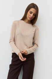 Джемпер из вискозного полупрозрачного трикотажного полотна с круглой горловиной. Длина изделия 55 см. Длина рукава 62 см. собери комплект: бежевый+ брюки R2075 коричневый.