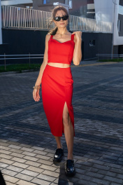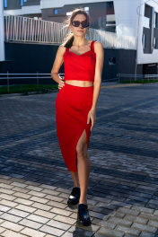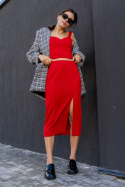 Топ и юбка приталенного силуэта из текстиля с разрезом Luna 124 красный