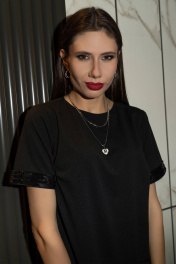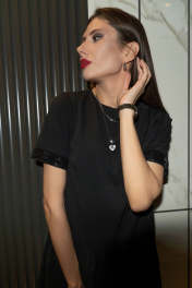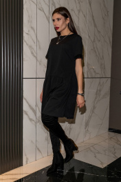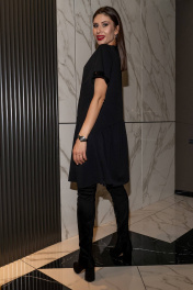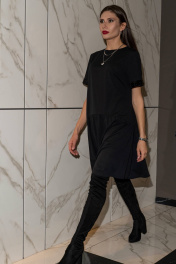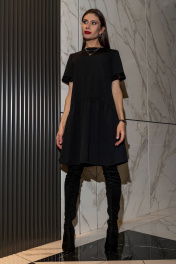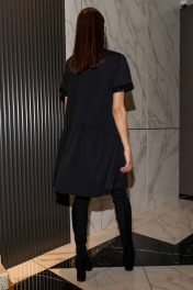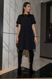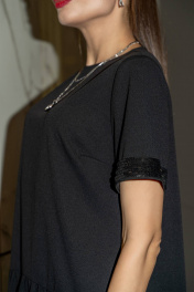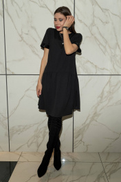 Платье А- силуэта с фигурным воланом, по внизу рукава-декоративная тесьма.
