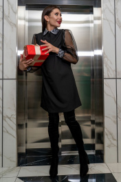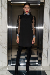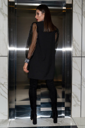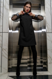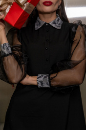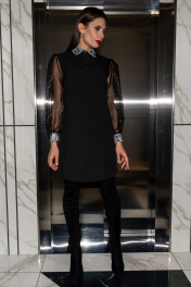 Платье А-силуэта с застежкой на пуговицы и органзой Luna 134 черный