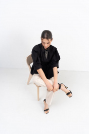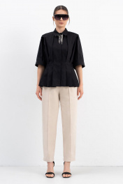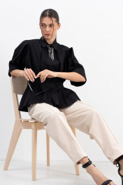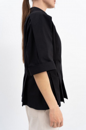 Стильная рубашка интересного кроя полуприлегающего силуэта с центральной застёжкой на петли и пуговицы,по талии переда и спинке застрочены складки/шлицы.Продуманные детали кроя подчеркнут Вашу индивидуальность.
