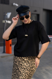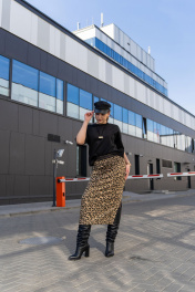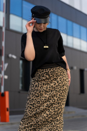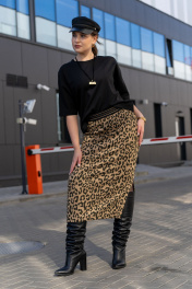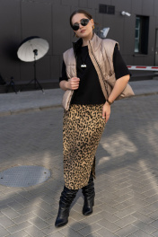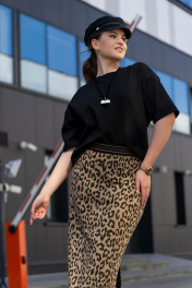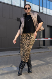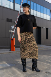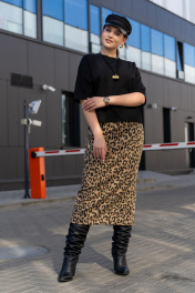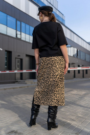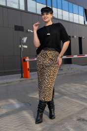 Трикотажная юбка с притачным поясом и разрезом Luna 189 леопард