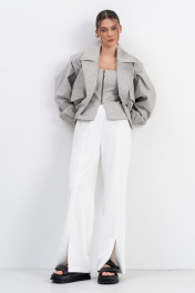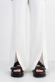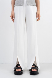 Широкие прямые брюки из плотного трикотажного полотна актуального кроя на удобном поясе с резинкой частично по переду и спинке,вертикальные швы с разрезами вытягивают фигуру.Накладные карманы сзади для удобства.Базовая модель-идеальный вариант от casual образа до стильного офисного лука.