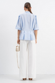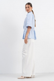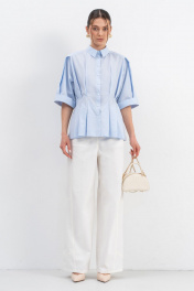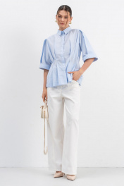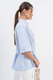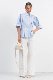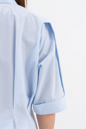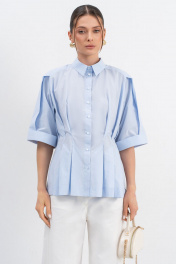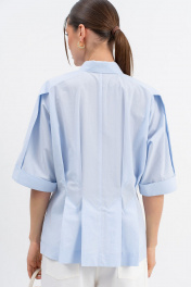Стильная рубашка интересного кроя полуприлегающего силуэта с центральной застёжкой на петли и пуговицы,по талии переда и спинке застрочены складки.Продуманные детали кроя подчеркнут Вашу индивидуальность. РАЗМЕРЫ РОСТ 170см 44 46 48 50 Рубашка Ширина по линии груди, см. 50 52 54 56 Ширина по линии талии, см. 44 46 48 50 Ширина по низу рукава ,см 20 22 24 26 Длина изделия, см. (по спинке) 65 65 65 65 Длина рукава от точки плеча, см. 32 32 32 32