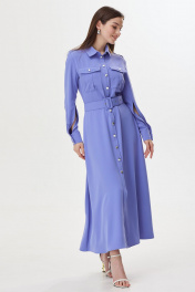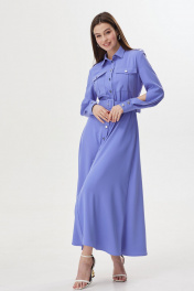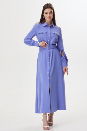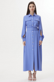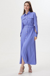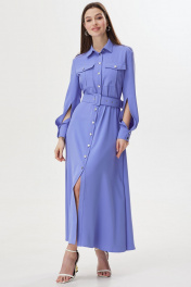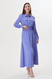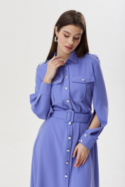 Стильное платье полуприлегающего силуэта, расширенное к низу из струящейся ткани. Воротник рубашечного типа с застежкой на петли и пуговицы. Рукав втачной длинный с декоративным разрезом, по низу манжета с застежкой на петли и пуговицы. По переду и спинке на линии талии подрез. Лиф переда с накладными карманами и клапанами. На плечевых швах расположены декоративные пагоны с пуговицами. В боковых швах функциональные карманы. В комплект входит съемный ремень. Обращаем ваше внимание, что фурнитура может незначительно отличаться от фото. Длина изделия: 131см Длина рукава: 61см