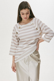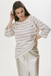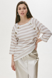 Джемпер прямого силуэта из трикотажного полотна. Горловина округлая. Рукав реглан длиной 3/4. По переду декоративная складка с пуговицами. Обращаем ваше внимание, что фурнитура может незначительно отличаться от фото. Длина джемпера: (44-48р – 63 см)(50-54р - 66 см)(56-60р - 69 см) Длина рукава от горловины: 53см