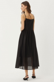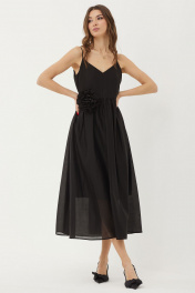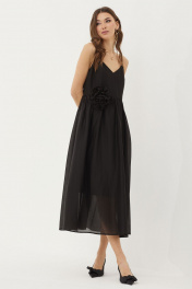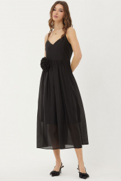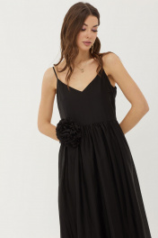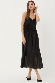 Платье полуприлегающего силуэта расширенное книзу из тенселя. Платье на бретелях с V- образным вырезом горловины. В области талии подрез со сборкой. Платье на подкладке из штапеля. В комплект входит съемная брошь.